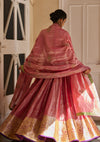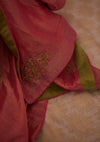 The Kamal Tissue Odhni is created in soft handwoven silk tissue with delicate hand embroidered motifs and a contrasting pista green back-finish.