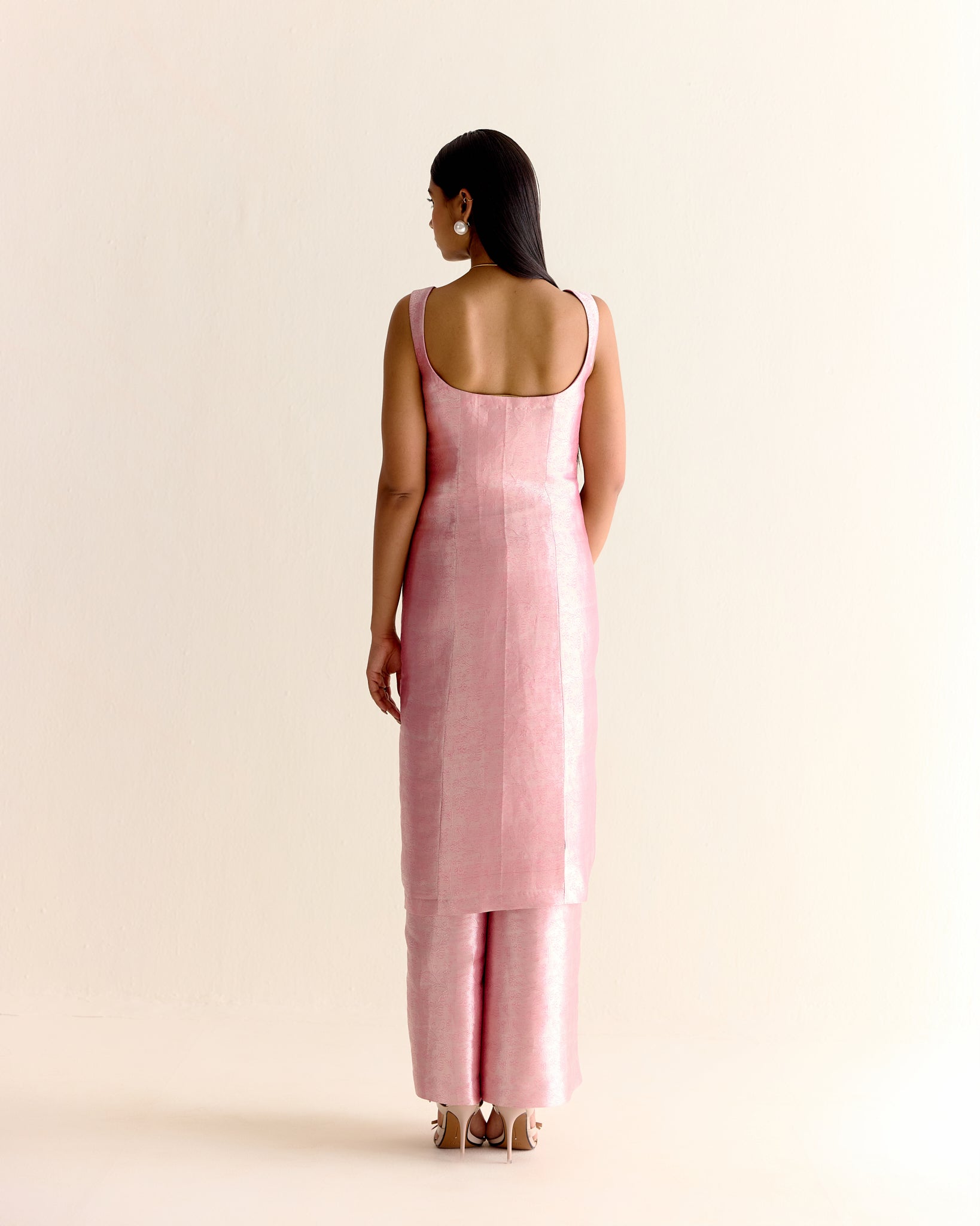 Pair the Kurta with wide pants in handwoven Kimkhwaab tanchoi tissue.