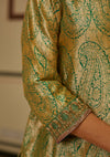 The Panna Boteh Kurti is a relaxed silhouette tailored in our heritage brocade handwoven in mulberry silk and gold plated zari by our artisans in Banaras. The kurti pairs perfectly with our lehengas and sarees alike.