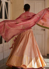 Inspired by royal Awadhi silhouettes, the Saundh Lehenga is tailored in graceful folds of handwoven silk tissue, created by our artisans in Banaras, complete with a border woven with dainty motifs. The lehenga is paired with a matching blouse in handwoven silk brocade and a contrasting hand embroidered tissue odhni.