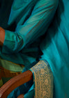 The Varsha Odhni is crafted in wispy silk organza, finished with a heritage handwoven zari border and brocade piping.