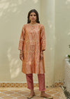 The Sindoori Jalsa Kurta in a royal kalidaar silhouette is handcrafted in a heritage brocade handwoven in pure mulberry silk and gold plated sari by our skilled artisans in Banaras. It is detailed with delicate hand embroidery in dab and zardozi along the neckline. The kurta is paired with the Sindoori Jalsa Pants in handwoven tissue and the the Sindoori Jalsa Odhni in silk tissue with booti zardozi and dabka hand embroidery all over.